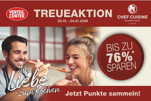 Sparen Sie bis zu 76%* auf ausgewählte Ware von Chef Cuisine! Die Sammelhefte erhalten Sie im Vorteil Center Asbach und Unkel.